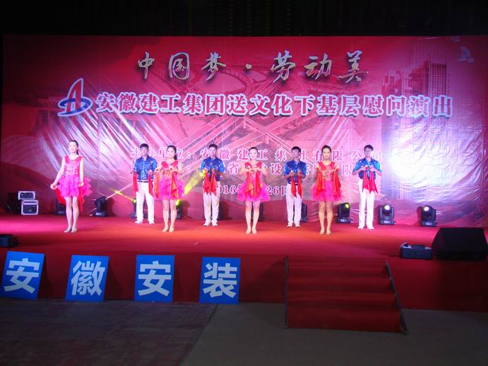 8月26日晚,集團公司送文化下基層深入公司白湖監(jiān)獄罪犯醫(yī)療綜合樓項目部慰問演出,白湖監(jiān)獄綜合樓項目部全體管理人員和農(nóng)民工兄弟200多人現(xiàn)場觀看了演出。該工程位于廬江縣白湖鎮(zhèn),這里工作著一批腳踏實地、埋頭苦干、敢于擔(dān)當(dāng)、奉獻(xiàn)企業(yè)的職工,來自集團公司各子公司的“演員”,帶著自編、自導(dǎo)、自演的精品文藝作品,將用一場精妙的文化活動,在這里掀起文化與建設(shè)互動的歡樂波瀾。集團公司工會主席徐曉光,白湖分局黨委副書記、總經(jīng)理沈建華以及公司有關(guān)領(lǐng)導(dǎo)和參演單位工會主席出席了演出活動。