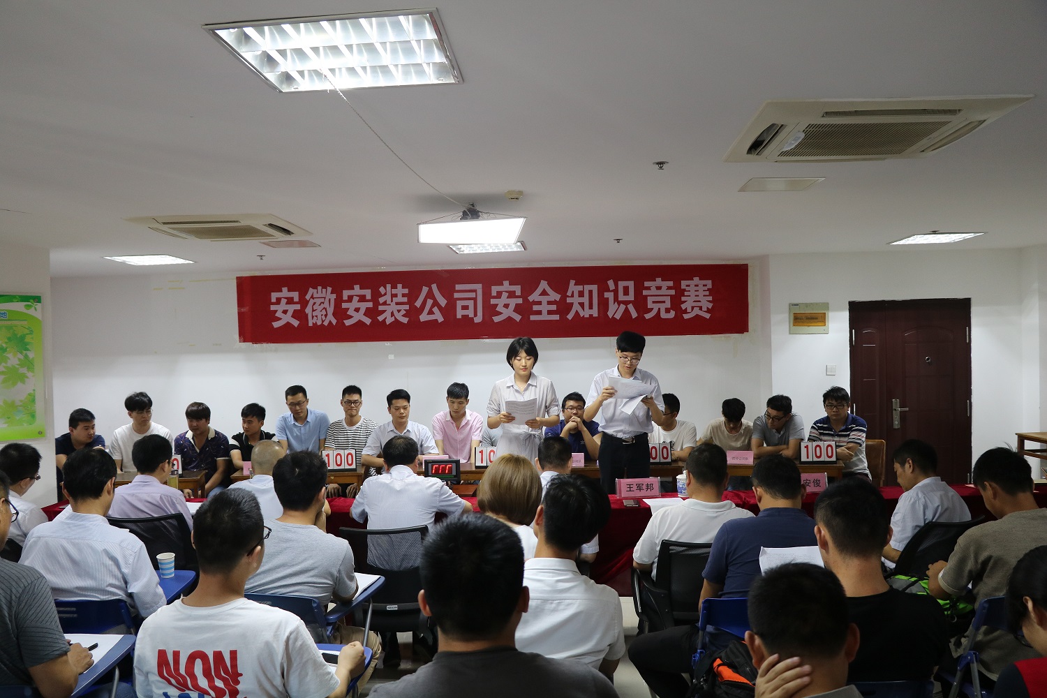公司董事長、總經(jīng)理王軍邦,黨委書記、副總經(jīng)理胡六中,副總經(jīng)理劉安俊,紀(jì)委書記、工會主席李寬旭出席了活動。各分公司黨政主要負(fù)責(zé)人、安全科長、項目專職安全管理人員及機關(guān)各部門觀看了比賽。賽前劉安俊發(fā)表講話:公司通過舉辦安全知識競賽,普及全員安全生產(chǎn)知識,提高全員安全意識,把安全理念貫徹到每一位職工和安全生產(chǎn)的各個環(huán)節(jié),要始終如一、持之以恒、深入持久地把安全工作抓緊、抓細(xì)、抓實、抓出成效。