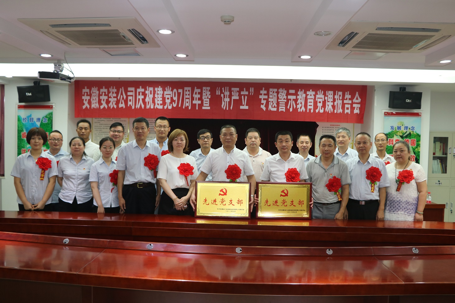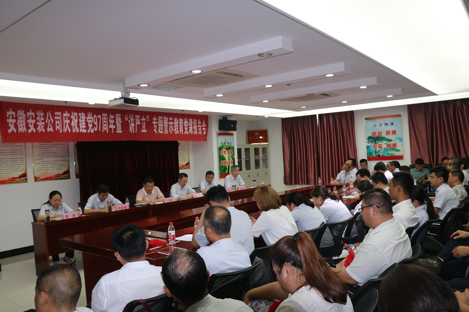 為慶祝中國(guó)共產(chǎn)黨建黨97周年,扎實(shí)開展好“講忠誠(chéng)、嚴(yán)紀(jì)律、立政德”專題警示教育,推動(dòng)全面從嚴(yán)治黨向縱深發(fā)展。7月4日下午,安徽安裝公司黨委召開慶祝建黨97周年暨“講嚴(yán)立”專題警示教育黨課報(bào)告會(huì)。公司黨委書記、副總經(jīng)理胡六中作了題為《講忠誠(chéng) 嚴(yán)紀(jì)律 立政德 做新時(shí)代合格共產(chǎn)黨員》的黨課報(bào)告。公司董事長(zhǎng)、總經(jīng)理、黨委副書記王軍邦主持會(huì)議并宣貫集團(tuán)公司慶祝建黨97周年暨黨的建設(shè)工作會(huì)議精神。黨委委員、副總經(jīng)理劉安俊宣讀表彰決定。公司領(lǐng)導(dǎo)班子成員、機(jī)關(guān)部門正副職、機(jī)關(guān)在崗黨員、分公司領(lǐng)導(dǎo)班子成員和受表彰的先進(jìn)基層黨組織、優(yōu)秀共產(chǎn)黨員和優(yōu)秀黨務(wù)工作者共70余人參加會(huì)議。