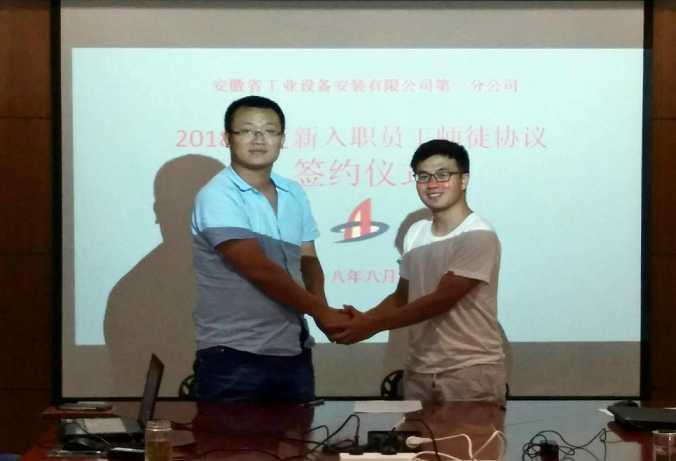 為加快推進(jìn)公司人才隊(duì)伍建設(shè),滿足公司可持續(xù)健康發(fā)展需要,安徽安裝公司規(guī)范用才機(jī)制,加大人才培養(yǎng)力度。近日,公司組織新入職員工進(jìn)行師徒結(jié)對(duì),簽訂師徒協(xié)議,安排有經(jīng)驗(yàn)的管理人員做好“傳幫帶”,幫助新員工盡快地適應(yīng)企業(yè)、熟悉工作,掌握崗位技能,盡快成長(zhǎng)成熟。