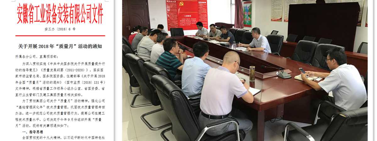 為了貫徹落實(shí)2018年“質(zhì)量月”活動(dòng)精神,強(qiáng)化“基礎(chǔ)管理深化年”技術(shù)質(zhì)量管理,進(jìn)一步規(guī)范技術(shù)質(zhì)量管理行為,提升工程技術(shù)質(zhì)量管理水平,安徽安裝公司積極響應(yīng)、多措并舉,扎實(shí)開展“質(zhì)量月”活動(dòng)。