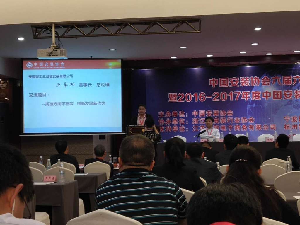 2018年4月24日,安徽省安裝和機(jī)械設(shè)備協(xié)會(huì)參加中國(guó)安裝協(xié)會(huì)在寧波召開(kāi)的六屆六次理事(擴(kuò)大)會(huì)議暨2016-2017年度中國(guó)安裝協(xié)會(huì)科學(xué)技術(shù)進(jìn)步獎(jiǎng)?lì)C獎(jiǎng)大會(huì)。各省、自治區(qū)、直轄市安裝協(xié)會(huì)(分會(huì))、會(huì)員單位地區(qū)聯(lián)絡(luò)組負(fù)責(zé)人,協(xié)會(huì)理事與科技進(jìn)步獎(jiǎng)獲獎(jiǎng)單位代表等近300人參加會(huì)議。我會(huì)會(huì)長(zhǎng)王軍邦攜副會(huì)長(zhǎng)李鵬飛、秘書(shū)長(zhǎng)杜慶梅及部分會(huì)員單位代表分別參會(huì)。