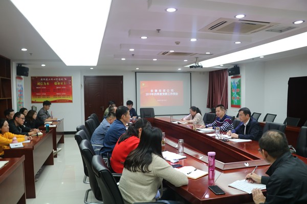 會(huì)上,所屬各黨支部圍繞扎實(shí)開(kāi)展“不忘初心、牢記使命”主題教育、推動(dòng)省委巡視反饋問(wèn)題整改、慶祝新中國(guó)成立70周年系列活動(dòng)、支部其他重點(diǎn)工作、支部中存在的不足及四季度主要工作計(jì)劃進(jìn)行交流匯報(bào)。隨后公司黨群部門對(duì)四季度主要工作進(jìn)行了布置。