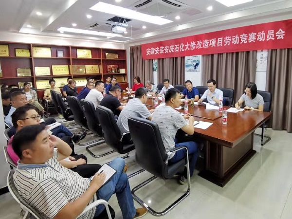 為激發(fā)廣大員工的工作熱情,確保年度各項(xiàng)目標(biāo)任務(wù)順利完成。根據(jù)集團(tuán)公司開(kāi)展“搶進(jìn)度、保工期、穩(wěn)預(yù)期、促提升”為主題勞動(dòng)競(jìng)賽活動(dòng),安徽安裝安慶分公司從2019年10月1日—2020年1月10日開(kāi)展“大干100天”勞動(dòng)競(jìng)賽。2019年9月28日下午,公司紀(jì)委書記、工會(huì)主席李寬旭,安慶分公司管理人員和施工班組長(zhǎng)共30多人參加了“大干100天”勞動(dòng)競(jìng)賽動(dòng)員會(huì)。