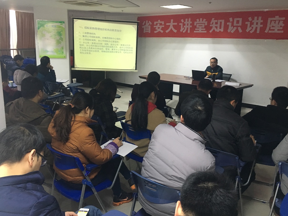 12月7日上午“省安大講堂”—招標(biāo)業(yè)務(wù)培訓(xùn)在職工之家開課。本次培訓(xùn)由招標(biāo)辦副經(jīng)理李文山授課,公司機(jī)關(guān)、分公司、項(xiàng)目部相關(guān)人員共30余人參加。