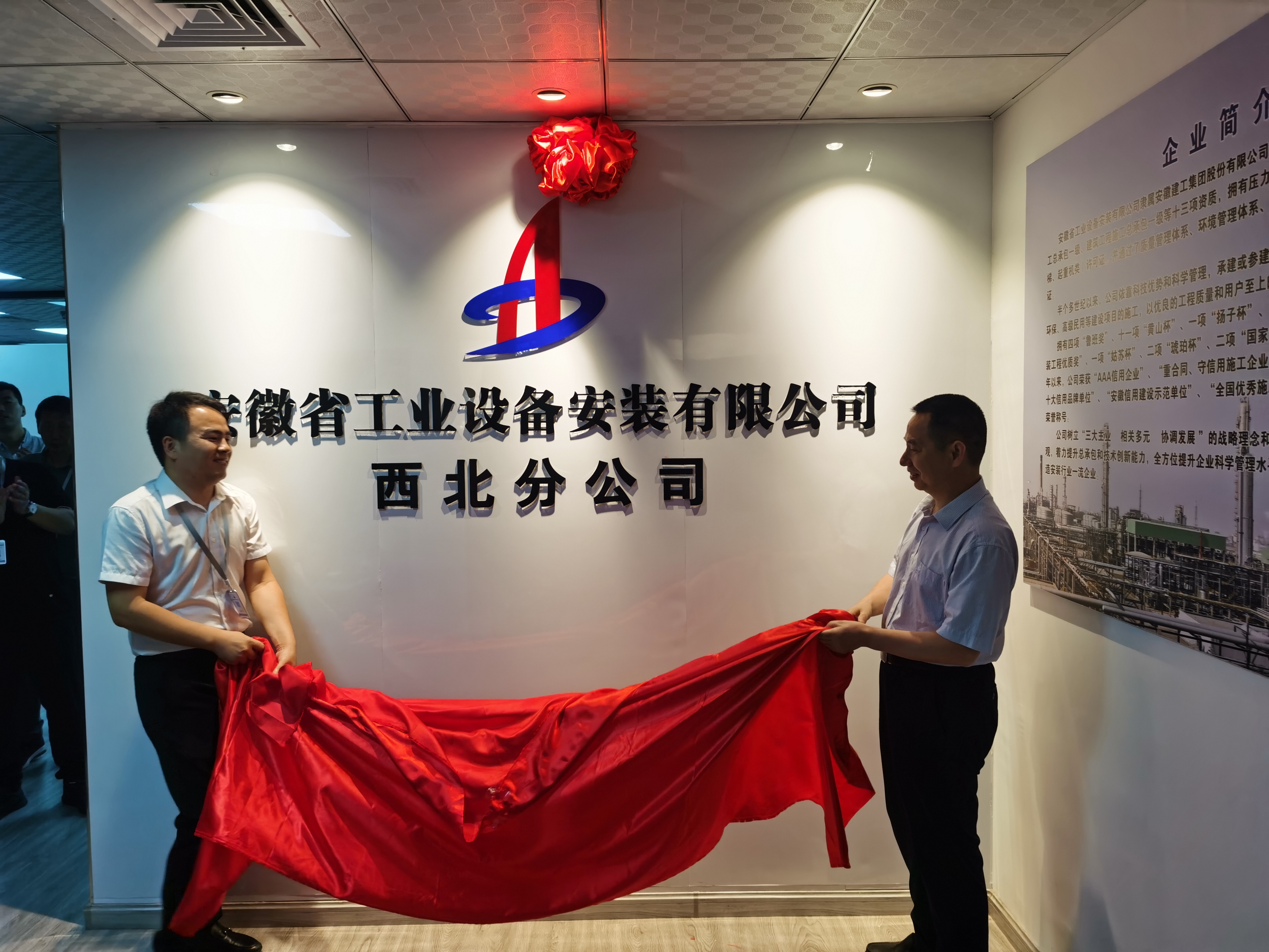 6月8日上午,安徽安裝西北分公司舉行搬遷揭牌儀式,安徽安裝公司黨委書記、董事長(zhǎng)胡六中,副總經(jīng)理、新疆烏蘇分公司經(jīng)理王軍一行出席了儀式,本次儀式由西北分公司黨支部書記江輝主持。