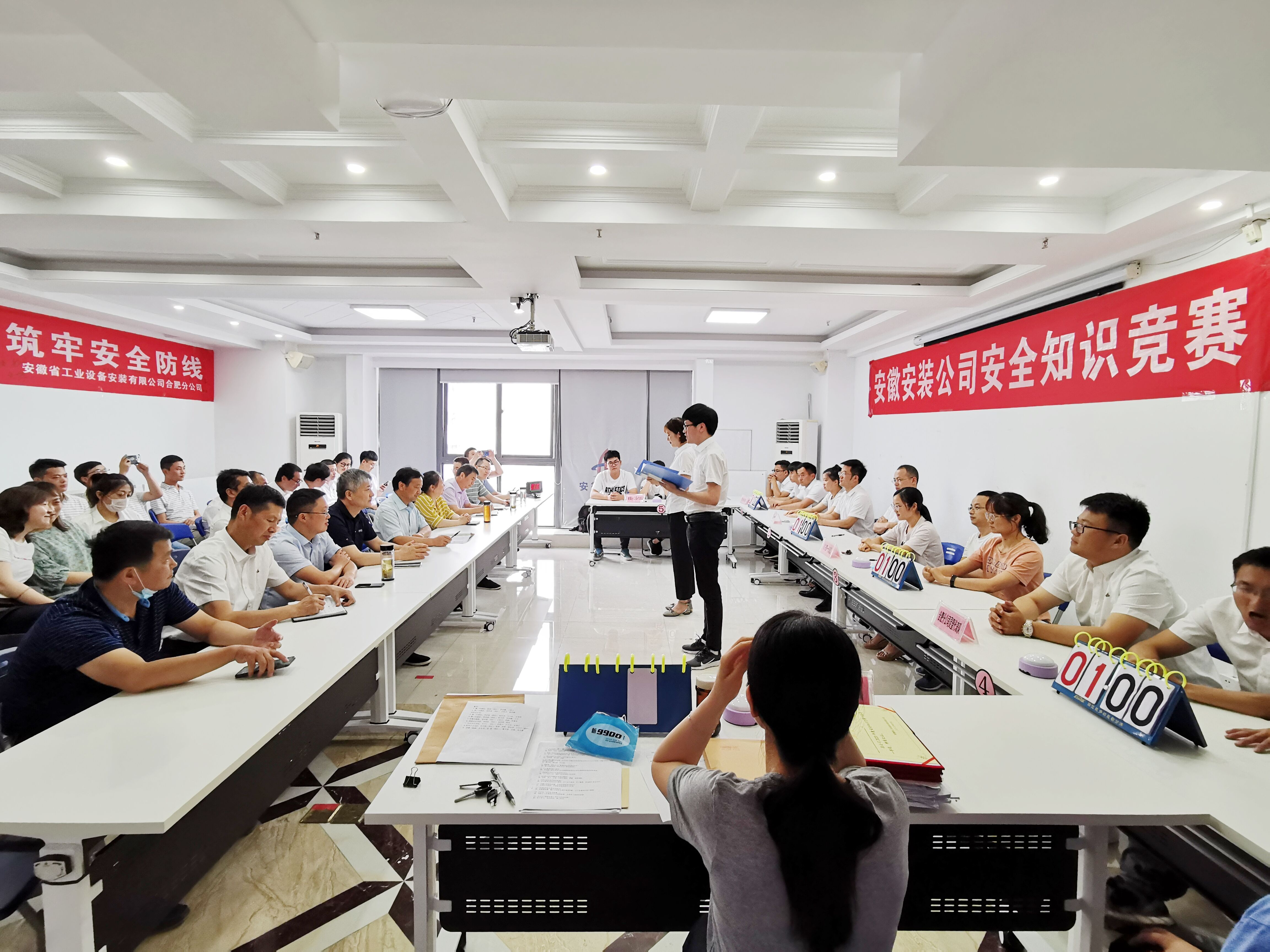 為切實開展2020年全國第十九個“安全生產(chǎn)月”活動,進一步提高全員安全意識與知識水平,普及疫情防控相關知識,6月11日下午,安徽安裝公司舉辦安全生產(chǎn)知識競賽。公司黨委書記、董事長胡六中,副總經(jīng)理高飛,紀委書記、工會主席李寬旭,副總經(jīng)理李原,總工程師吳繼成應邀出席。