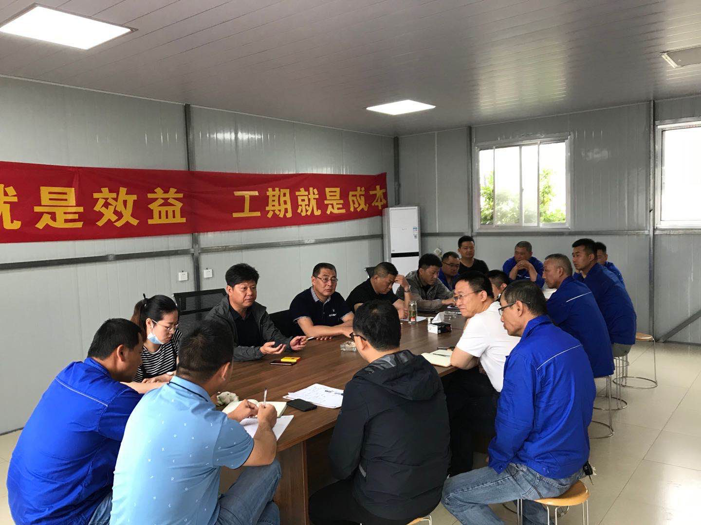 張?jiān)笾赋?,日照鋼鐵廠鋼結(jié)構(gòu)安裝項(xiàng)目合同額共計(jì)1.35億元,規(guī)模較大,難度較高,項(xiàng)目部全體人員一要高度重視、團(tuán)結(jié)一心,克服困難抓生產(chǎn)、保進(jìn)度;二要繼續(xù)做好疫情防控各項(xiàng)工作,“外防輸入、內(nèi)防反彈”,為項(xiàng)目人員身體健康提供堅(jiān)實(shí)保障;三要克服山東地區(qū)天氣和工人夏收返鄉(xiāng)等因素的影響,持續(xù)發(fā)力、合理安排,爭(zhēng)取早日完成滿產(chǎn)超產(chǎn)目標(biāo)。
