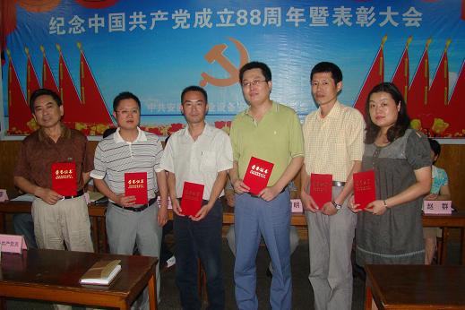 為迎接中國共產(chǎn)黨成立88周年,公司黨委于6月30日下午召開了“紀(jì)念中國共產(chǎn)黨成立88周年暨表彰大會”。合肥地區(qū)在崗黨員、非黨員中層干部、入黨積極分子,外地分公司經(jīng)理、書記以及受表彰的先進(jìn)個(gè)人參加了大會。大會由黨委書記戴樹明同志主持。