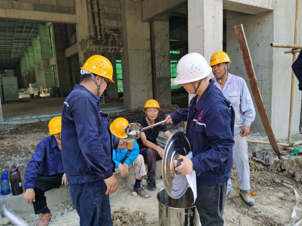 一是認真做好防暑降溫工作。及時召開項目專題會議,全面落實防暑降溫及勞動保護措施。項目部為各施工班組配發(fā)了人丹、十滴水、風(fēng)油精等防暑降溫藥品,每天定時將綠豆湯、茶水等送到各施工點,確保飲食及環(huán)境衛(wèi)生,并合理調(diào)整作業(yè)時間,確保施工人員“清涼”到位。