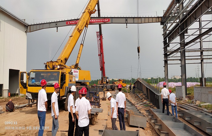 伴隨著現場人員緊張而又激動的心情,第一拼40米大跨度的重型橫梁徐徐升起,并精準吊裝就位,這意味著經過100多天的奮戰(zhàn)后,蕪湖項目鋼結構工程跨越了施工難度節(jié)點和取得了階段性突破,同時標志著該項目鋼結構工程最后的主體完工已邁出至關重要的一步。