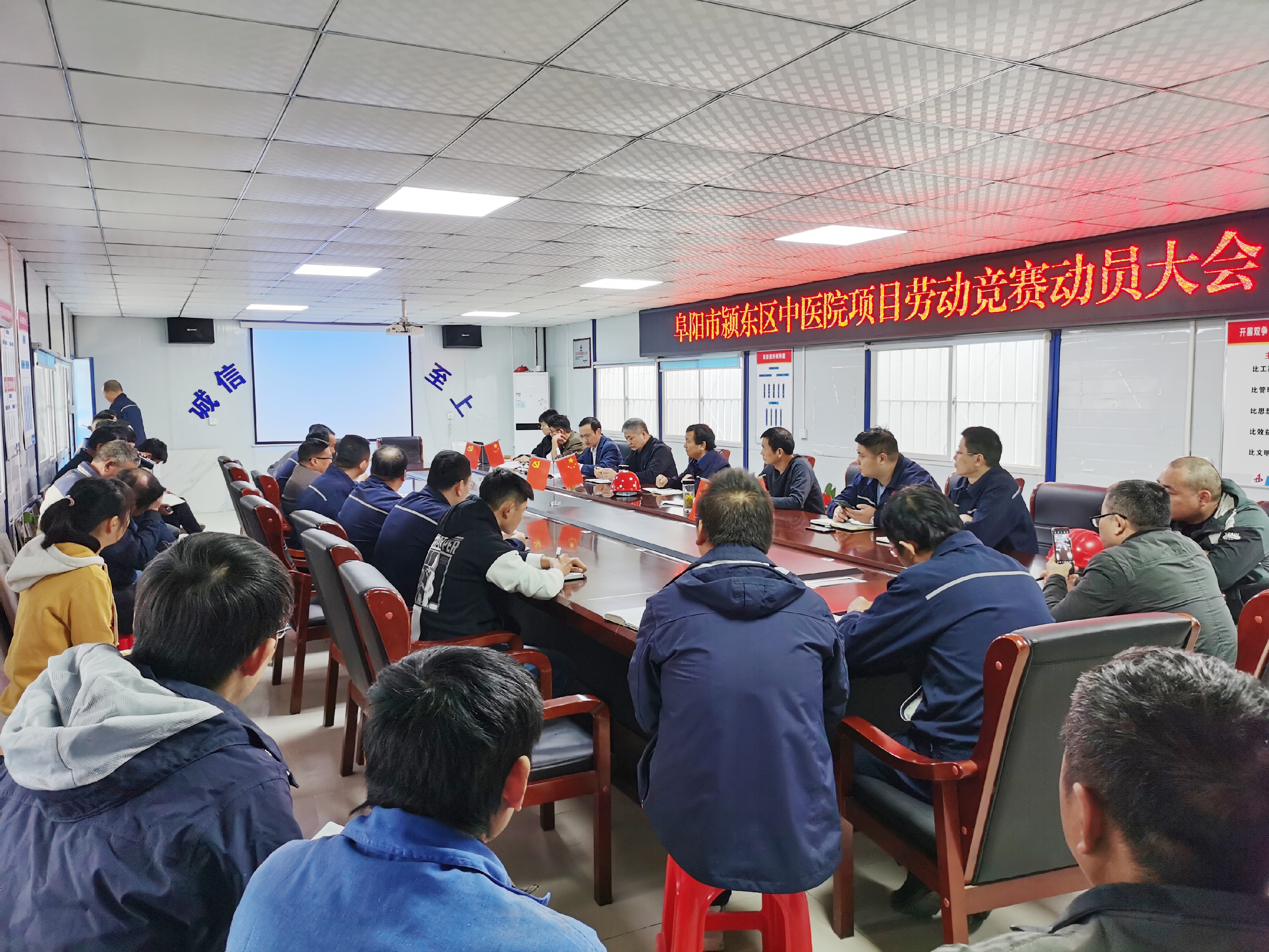 為確保年度各目標任務順利完成,貫徹落實集團公司開展“戰(zhàn)疫情、搶工期、保目標、促超產”為主題勞動競賽活動精神,2020年11月5日上午,安徽安裝召開阜陽潁東區(qū)中醫(yī)院建設PPP項目“大干90天,確保2021年春節(jié)前二層以上工程量全部完工”勞動競賽動員會。公司副總經(jīng)理高飛,紀委書記、工會主席李寬旭,總工程師吳繼成,公司相關部門負責人、項目管理人員和施工班組長共40多人參加了競賽動員會。