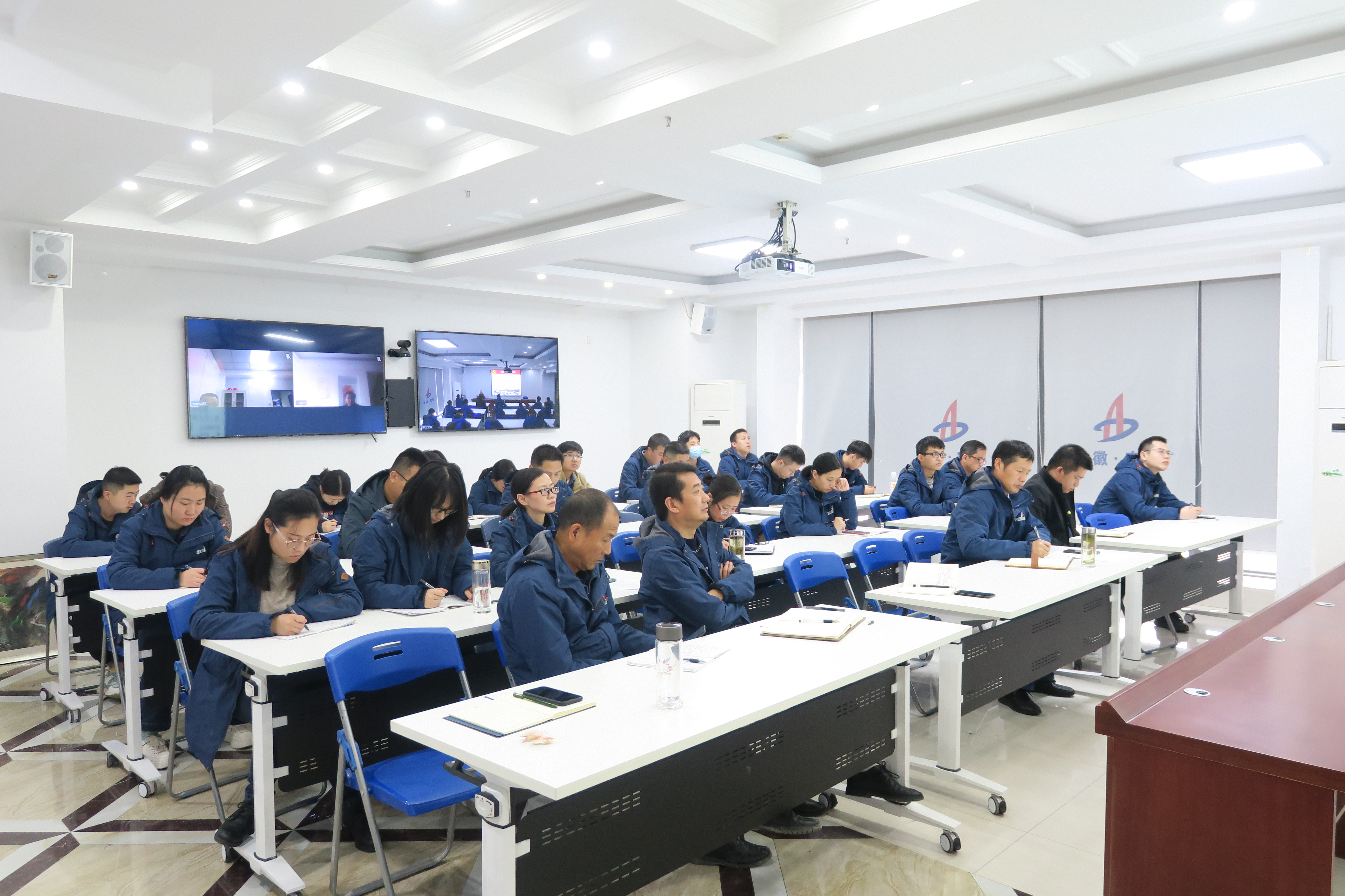 11月19日下午,公司機關第二黨支部書記姚春靜赴合肥分公司作題為《練好內功·干出亮點·走在前列 以高質量黨建助推公司高質量發(fā)展——深入學習貫徹習近平總書記考察安徽重要講話精神》專題黨課,分公司領導班子成員、支部黨員、入黨積極分子、青年團員、機關及在肥人員共40余人參加了會議。會議以視頻的方式進行,主會場設在公司職工之家,靈璧項目部、潛山項目部設立了分會場。