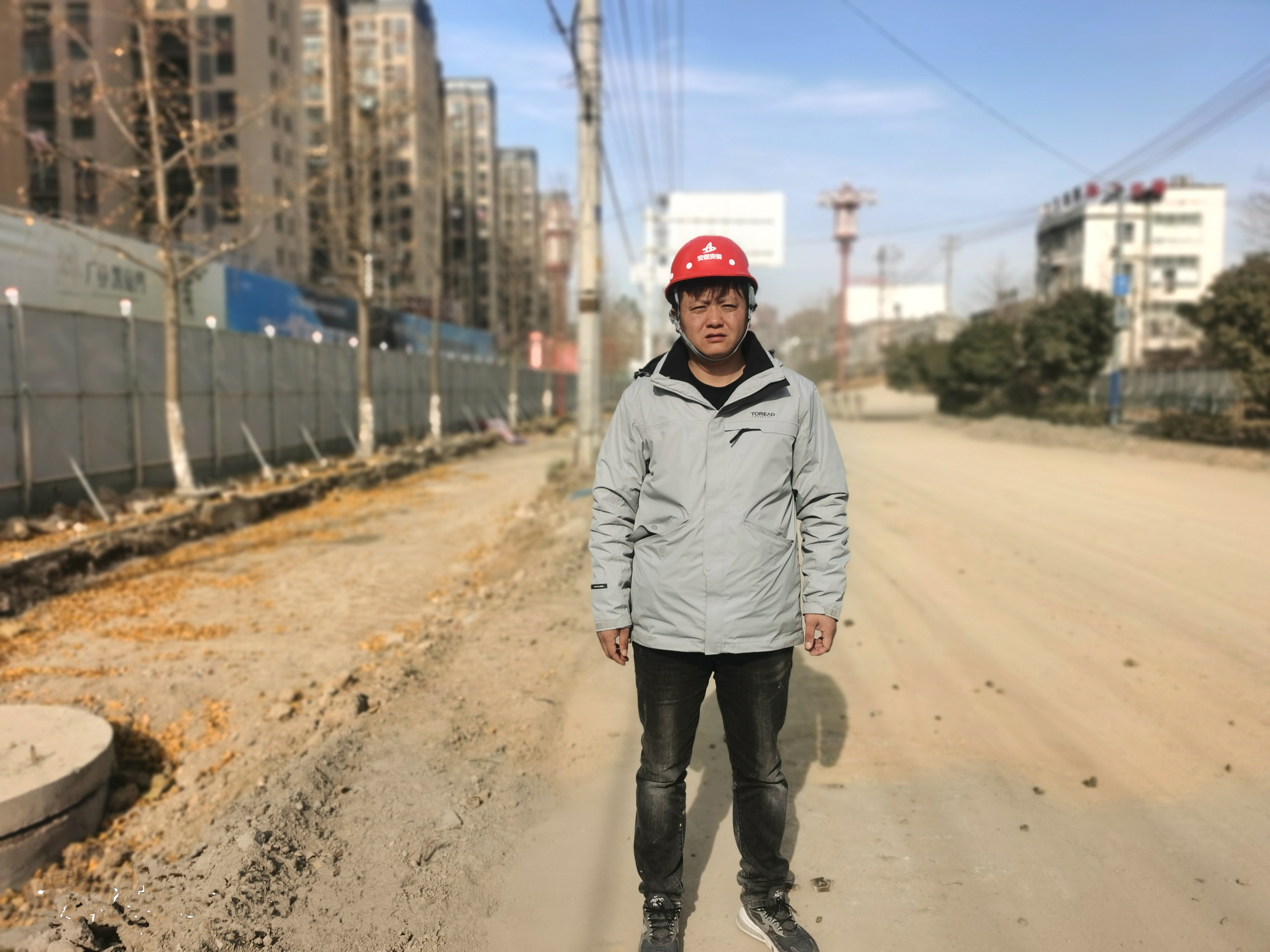 施工員潘俊龍每天一大早就騎上電動(dòng)車匆匆趕往施工現(xiàn)場(chǎng),這條熟悉的上班路已經(jīng)過了無數(shù)次,但還是由于天寒地凍的氣候連車帶人摔倒在地;顧不上磕到路牙上的腿帶來的疼痛感,他快速爬起身、扶起車?yán)^續(xù)前行。在他看來,疼痛可以忍受,但工作不能耽誤。