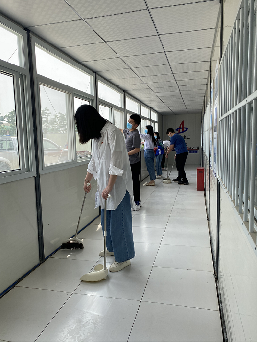 本次主題團日活動在房建(裝飾)分公司潤迅數據中心(合肥)產業(yè)園項目部進行。來到項目部,團員青年們結合疫情防控要求,協(xié)同項目部職工組織開展了大范圍的消殺大掃除。隨后列席參加了安全健康衛(wèi)生講座和公司紀委書記、工會主席李寬旭上的黨史學習教育專題黨課等。