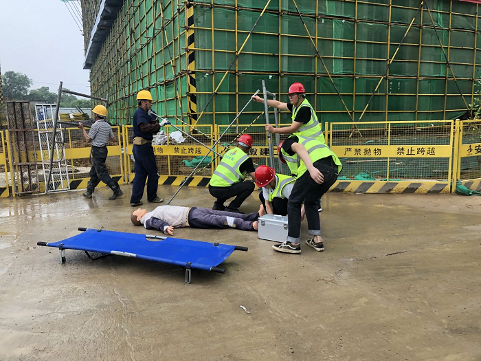 此次演練內(nèi)容為在活動(dòng)腳手架拆除的過(guò)程中,作業(yè)人員突然發(fā)生高處墜落事故。演練過(guò)程模擬了事故發(fā)生、信息上報(bào)、現(xiàn)場(chǎng)處置、現(xiàn)場(chǎng)救治、心肺復(fù)蘇、應(yīng)急狀態(tài)解除、善后處置等環(huán)節(jié)。本次演練指導(dǎo)思想明確,組織工作嚴(yán)密,準(zhǔn)備工作充分,事故處理井然有序,演練圓滿完成。