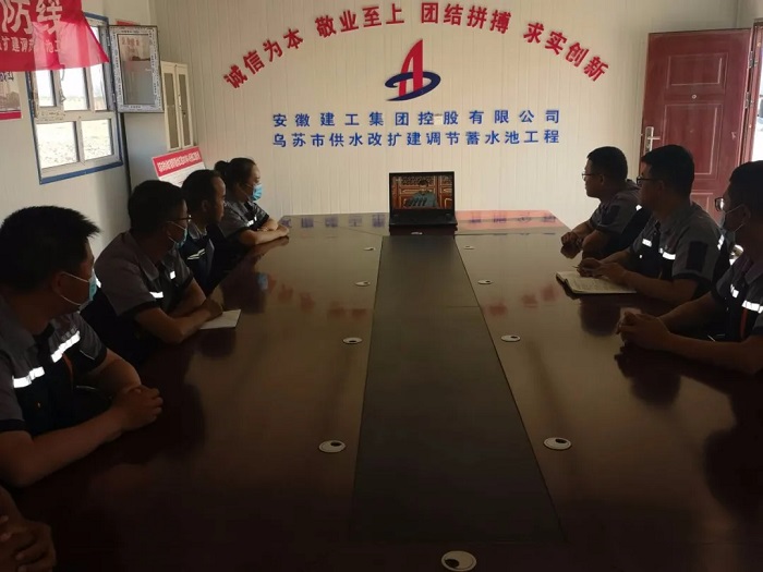新疆烏蘇分公司烏蘇市供水改擴(kuò)建調(diào)節(jié)蓄水池項(xiàng)目部人員集中觀看大會(huì)直播