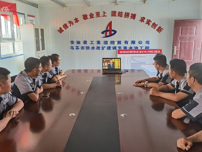 新疆烏蘇市供水改擴(kuò)建調(diào)節(jié)蓄水池項(xiàng)目部集中觀看節(jié)目