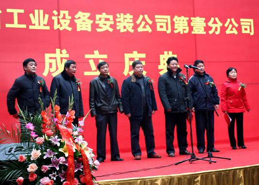 2010年元月10日,萬物萌生,瑞雪飄揚。經(jīng)過長時間的醞釀和籌備,安徽省工業(yè)設(shè)備安裝公司第壹分公司終于揭牌成立。公司總經(jīng)理王軍邦、黨委書記戴樹明攜公司黨政領(lǐng)導(dǎo)集體、合肥地區(qū)項目經(jīng)理、分公司經(jīng)理、機關(guān)部門負責(zé)人出席慶典,戴樹明書記主持儀式。