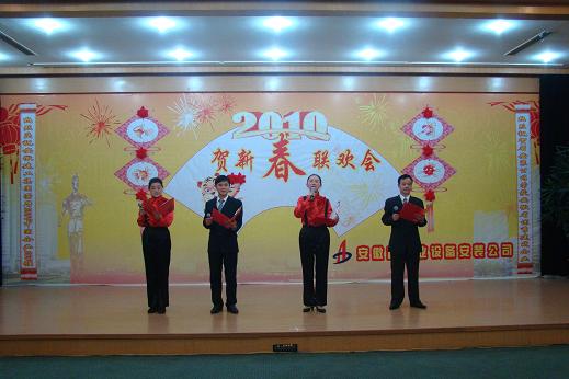公司王軍邦總經(jīng)理代表公司黨政領(lǐng)導(dǎo)班子致新年賀詞,感謝一年來(lái)上級(jí)領(lǐng)導(dǎo)的大力支持和關(guān)懷,感謝全體員工的辛勤付出和熱愛。伴隨著優(yōu)美的旋律,聯(lián)歡會(huì)在舞蹈《好運(yùn)來(lái)》中正式拉開序幕,火紅的扇子,舞出了我們共同的期盼;詩(shī)朗誦《承諾》,聲情并茂、鏗鏘有力的述說(shuō)了省安三年來(lái)發(fā)生的巨大變化和取得的輝煌成績(jī),博得了在場(chǎng)觀眾的陣陣掌聲。安慶分公司的戲劇小品《比翼雙飛》與合肥項(xiàng)目部的男聲獨(dú)唱《恭喜發(fā)財(cái)》同獲一等獎(jiǎng),蚌埠分公司的說(shuō)唱《三載巨變展新貌》和經(jīng)理辦的小品《昨天今天 明天》同獲二等獎(jiǎng)。