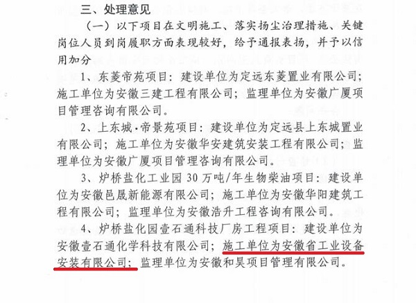 房建(裝飾)分公司壹石通項(xiàng)目受定遠(yuǎn)縣住房城鄉(xiāng)建設(shè)局通報(bào)表?yè)P(yáng)