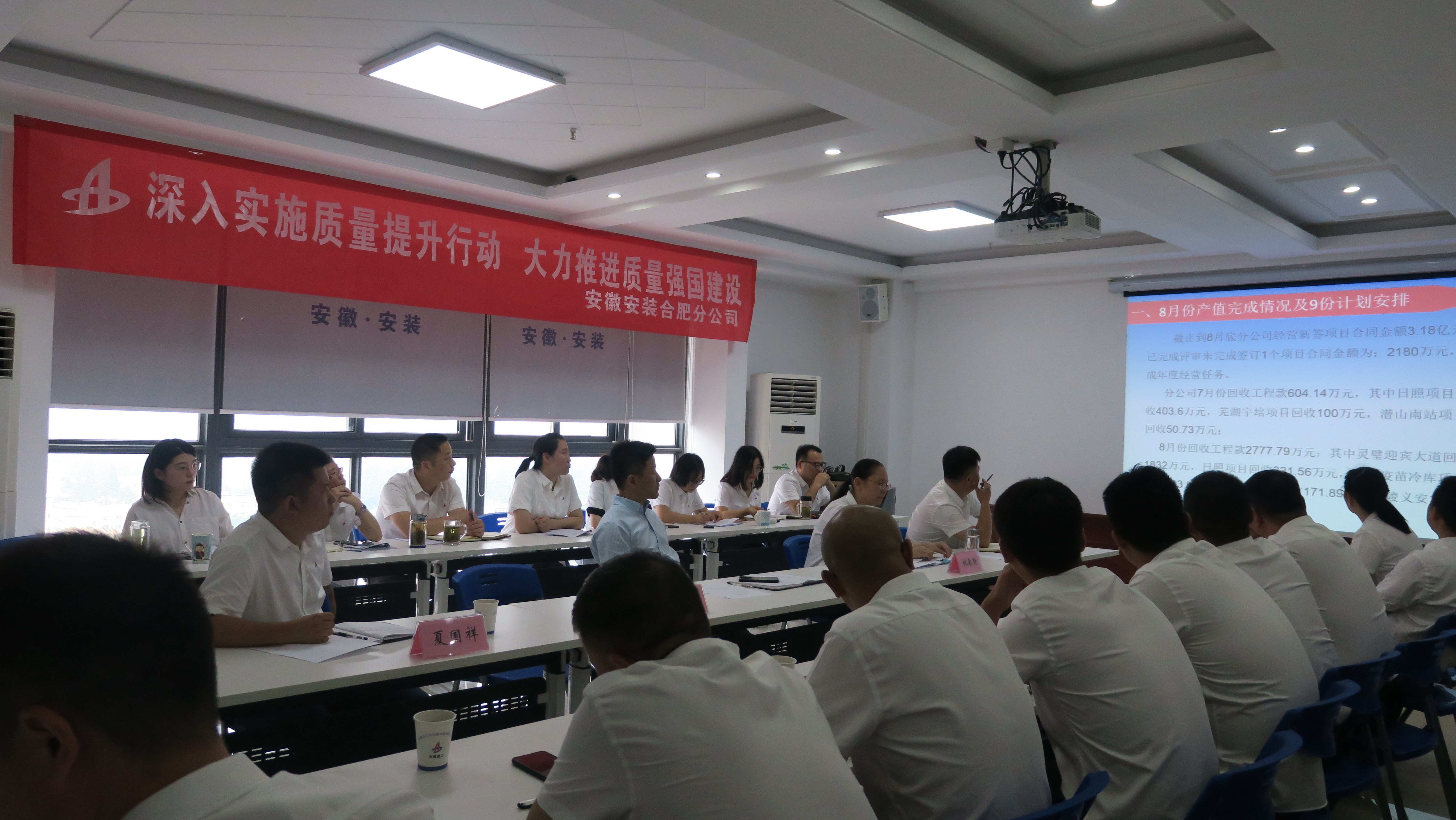 9月4日下午,合肥分公司召開了2021年9 月份生產(chǎn)、安全、經(jīng)營暨“質(zhì)量月”動(dòng)員會議。分公司領(lǐng)導(dǎo)班子成員、所屬各項(xiàng)目經(jīng)理、機(jī)關(guān)全體員工40余人參會,會議由工程管理部副主任馮慶捻主持。