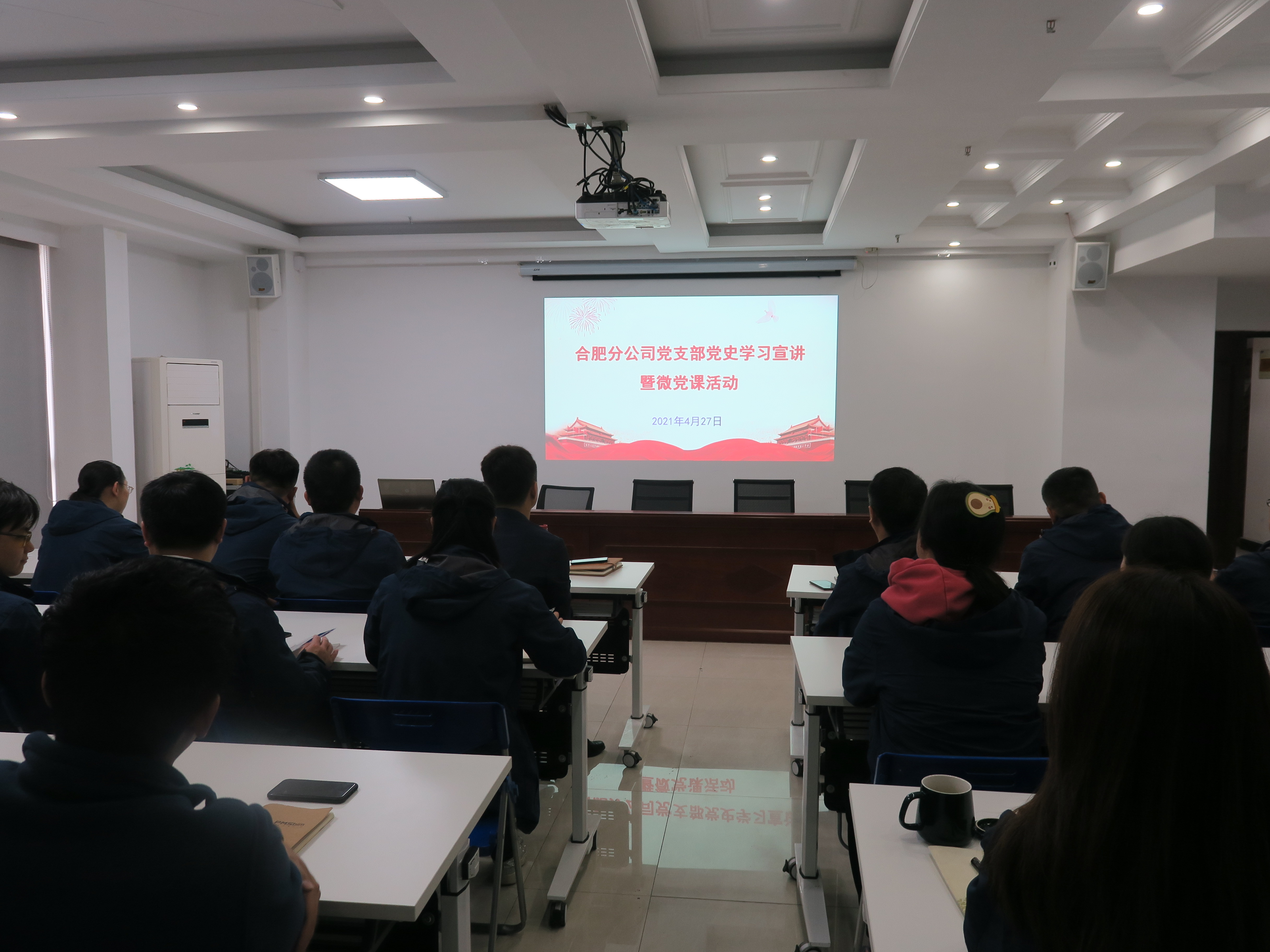 為深化紅色領(lǐng)航工程,講好黨的故事、傳承紅色基因、發(fā)揚(yáng)革命傳統(tǒng),扎實推進(jìn)黨史學(xué)習(xí)教育,引導(dǎo)黨員干部在黨的百年奮斗歷程中汲取精神力量,堅定理想信念,牢記初心使命,4月27日上午合肥分公司黨史學(xué)習(xí)宣講暨微黨課開播儀式在職工之家舉辦?;顒蝇F(xiàn)場,集中展播了《一部黨章百年史》和《制勝法寶》兩部黨史微黨課視頻,拉開了黨史學(xué)習(xí)宣講暨系列微黨課視頻刊播序幕?;顒佑晒究偨?jīng)理助理、合肥分公司經(jīng)理、黨支部書記趙永峰主持,分公司支部黨員、機(jī)關(guān)全員、項目經(jīng)理、入黨積極分子、團(tuán)員青年參加了此次活動。