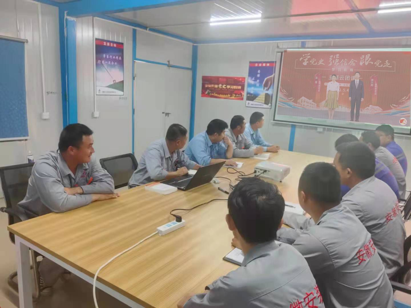項目部積極響應(yīng)公司黨史學(xué)習(xí)教育要求,促進黨史學(xué)習(xí)充分融入生產(chǎn)一線,營造出濃厚的“學(xué)黨史、促生產(chǎn)”的良好氛圍。5月1日,項目部開展了黨史學(xué)習(xí)教育交流會,會上項目部黨員皮軍同志帶領(lǐng)大家集中學(xué)習(xí)了《中國共產(chǎn)黨基本知識》并開展了黨史學(xué)習(xí)交流討論。5月4日,項目部組織團員青年通過線上觀看節(jié)目的方式觀看了由共青團中央、全國學(xué)聯(lián)舉辦的“學(xué)黨史、強信念、跟黨走”大型網(wǎng)絡(luò)直播主題云團課學(xué)習(xí)活動,在歌聲中感受激情燃燒的光輝歲月,在影像影視中見證時代的發(fā)展、歷史的變遷。