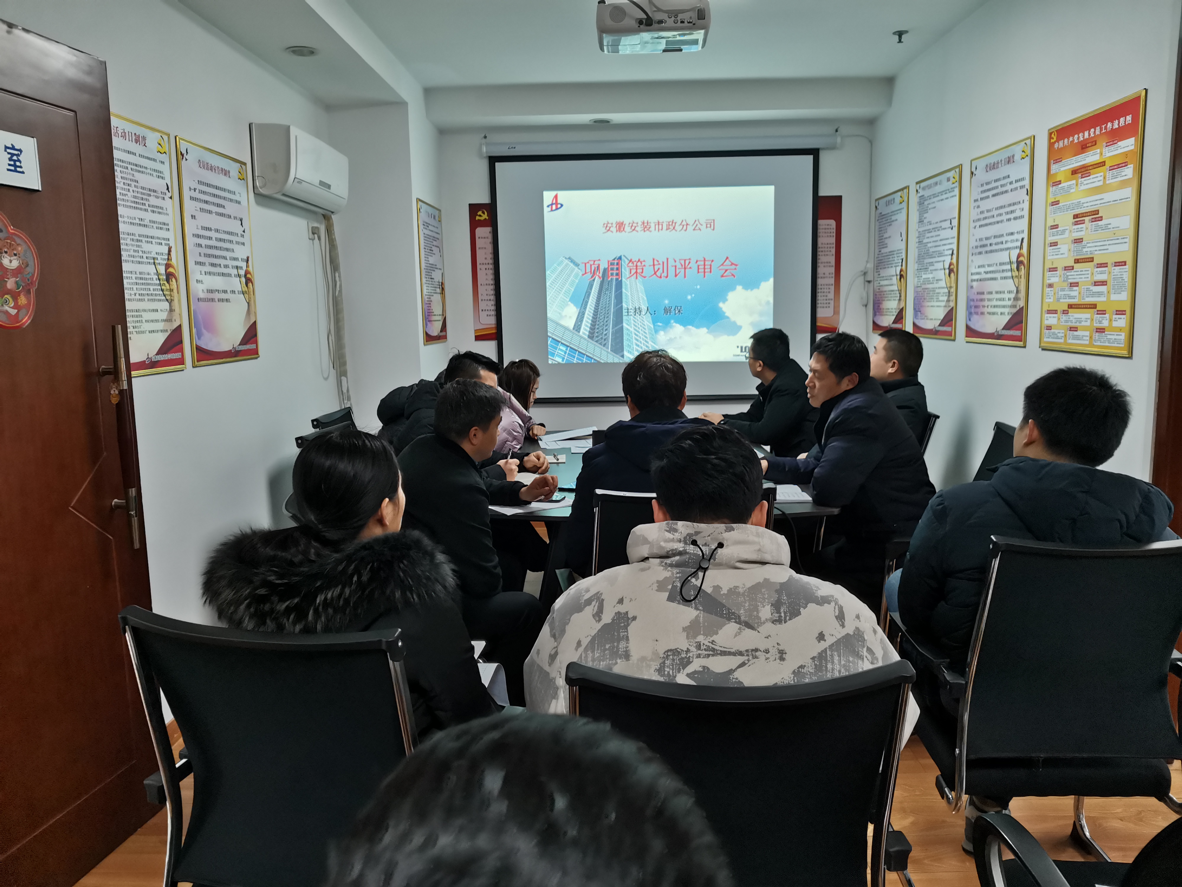 2022年2月17日上午,市政分公司在十四樓分公司會議室召開項目策劃評審會,分公司領導、項目策劃領導小組成員及項目部負責人參加會議,會議由分公司工程管理部主任解保主持。