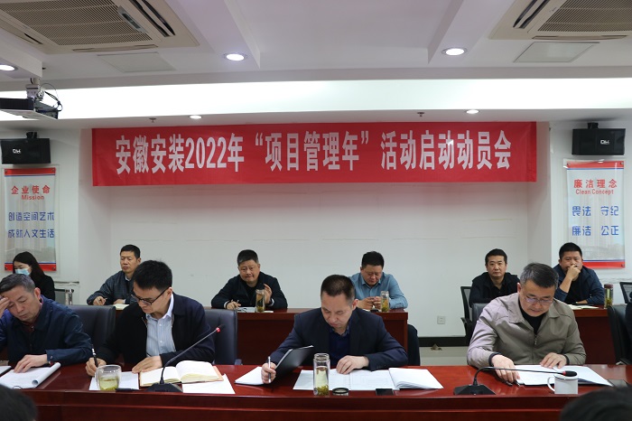 為持續(xù)抓好項(xiàng)目管理推進(jìn)工作落實(shí)機(jī)制,切實(shí)打好2022年度項(xiàng)目管理攻堅(jiān)戰(zhàn),4月6日,公司組織召開(kāi)2022年度“項(xiàng)目管理年”活動(dòng)啟動(dòng)動(dòng)員會(huì)。公司領(lǐng)導(dǎo)班子成員、機(jī)關(guān)各部門(mén)負(fù)責(zé)人、在肥分公司相關(guān)項(xiàng)目管理人員在公司大會(huì)議室參加會(huì)議,外地分公司以視頻形式參會(huì)。