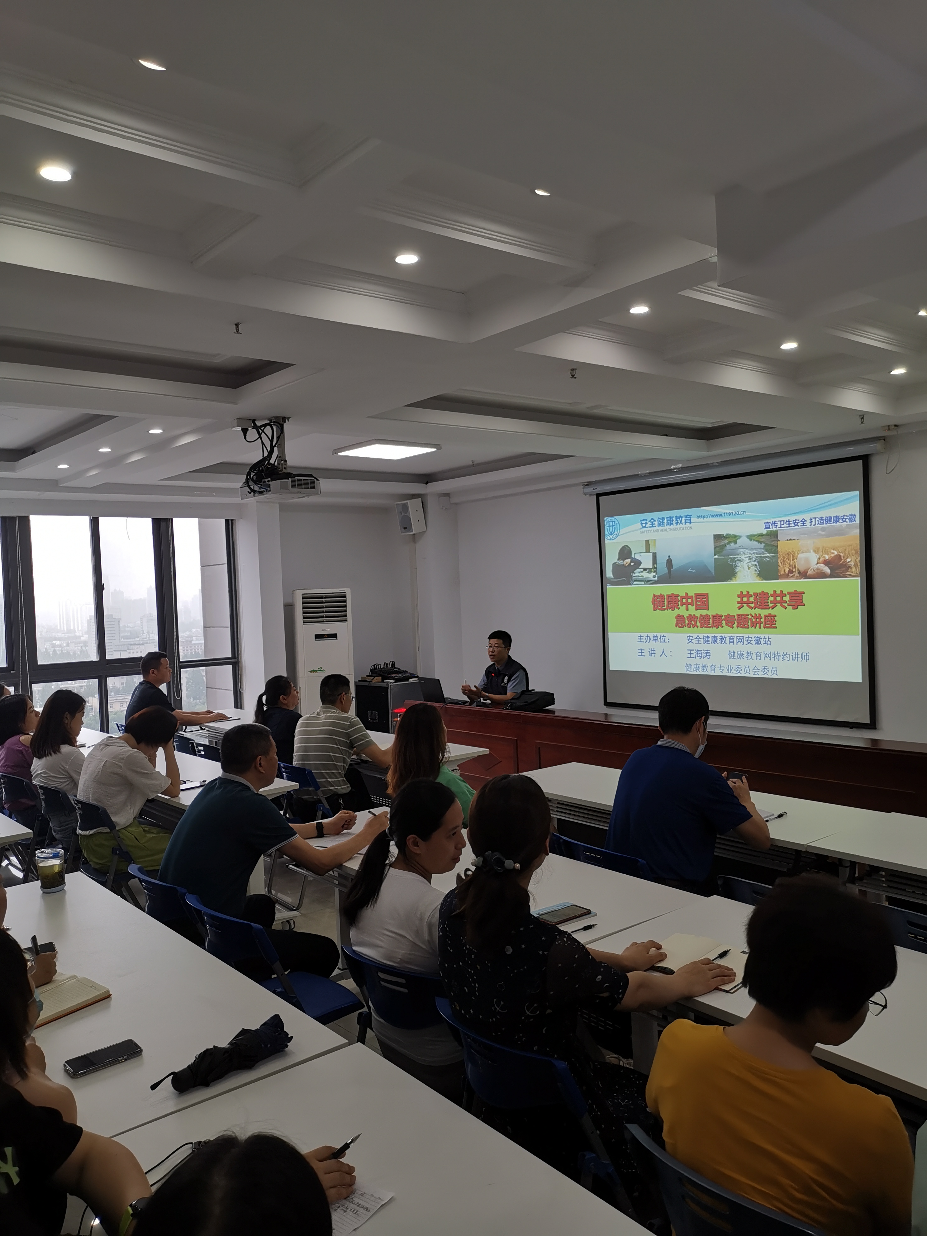 本次培訓(xùn)邀請安全健康教育網(wǎng)王海濤老師為大家進(jìn)行授課,老師結(jié)合豐富的健康教育知識(shí),重點(diǎn)從四個(gè)方面介紹了常見職業(yè)病與慢性病的預(yù)防和改善,公共衛(wèi)生常識(shí)及各種突發(fā)事故和突發(fā)疾病的自救互救,環(huán)境污染的危害及防護(hù),倡導(dǎo)文明健康、綠色環(huán)保的生活方式。全面講解了安全職業(yè)健康的知識(shí)和自救互救的能力,課程內(nèi)容深入淺出,得到在場參會(huì)人員的一致好評(píng)。