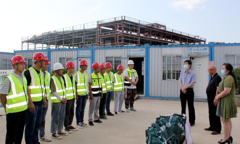 楊金城指出,蚌埠市總工會(huì)此次“送清涼”活動(dòng),既是關(guān)心一線生產(chǎn)工人、為職工服務(wù)的重點(diǎn)工作,也是“學(xué)黨史、辦實(shí)事”的一項(xiàng)具體措施,安徽安裝公司在臨港智能制造產(chǎn)業(yè)園項(xiàng)目施工中顧全大局,擔(dān)當(dāng)作為,不僅鍛造了一支高素質(zhì)的施工隊(duì)伍,更為蚌埠市經(jīng)濟(jì)發(fā)展做出了較大貢獻(xiàn),希望項(xiàng)目部全體職工繼續(xù)發(fā)揚(yáng)吃苦耐勞精神,做好疫情防控,將防暑降溫、安全生產(chǎn)等各項(xiàng)舉措落實(shí)到位,為職工提供一個(gè)舒適安全的工作環(huán)境。