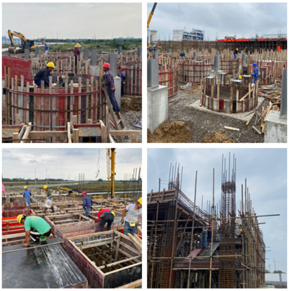 新宇藥業(yè)微生物藥物生產(chǎn)建設(shè)項目一期工程 罐體基礎(chǔ)設(shè)施;發(fā)酵車間一層頂腳手架搭設(shè)、模板安裝;動力車間鋼筋綁扎