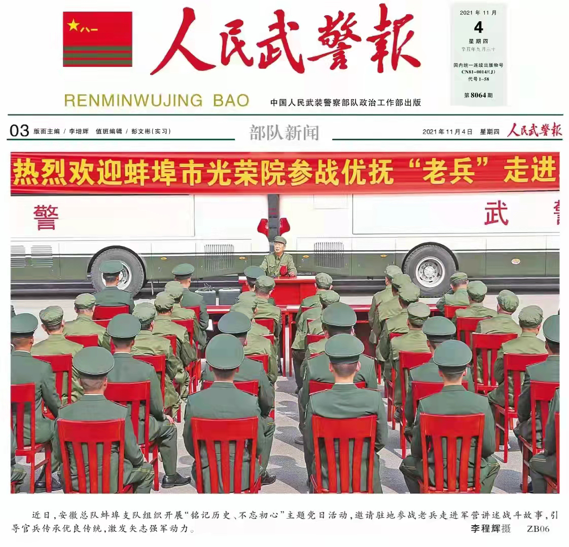 近日,《中國(guó)軍視網(wǎng)》《人民武警報(bào)》專題報(bào)道安徽安裝蚌埠分公司年飛同志作為參戰(zhàn)退伍老兵講授專題黨課。