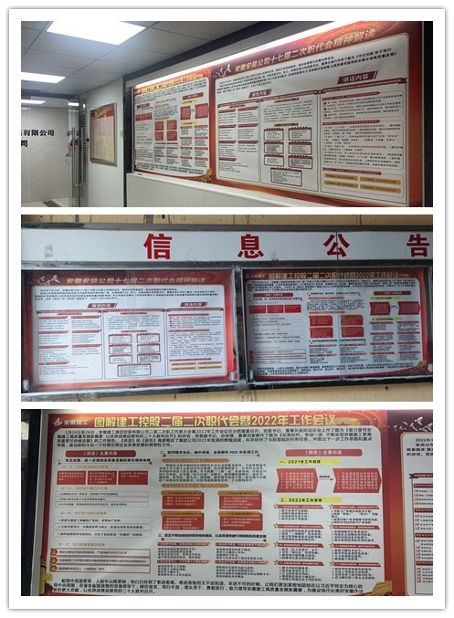 為統(tǒng)一思想,營造良好氛圍,分公司領(lǐng)導(dǎo)帶頭學(xué),黨支部利用支委會、機關(guān)(項目部)專題學(xué)習(xí)會、班子理論學(xué)習(xí)會、黨員活動日以及下發(fā)會議精神圖解、張貼宣傳欄、深入基層一線宣講等多種形式,迅速掀起學(xué)習(xí)宣貫集團(tuán)二屆二次職代會暨2022年工作會議和公司十七屆二次職代會精神的熱潮。