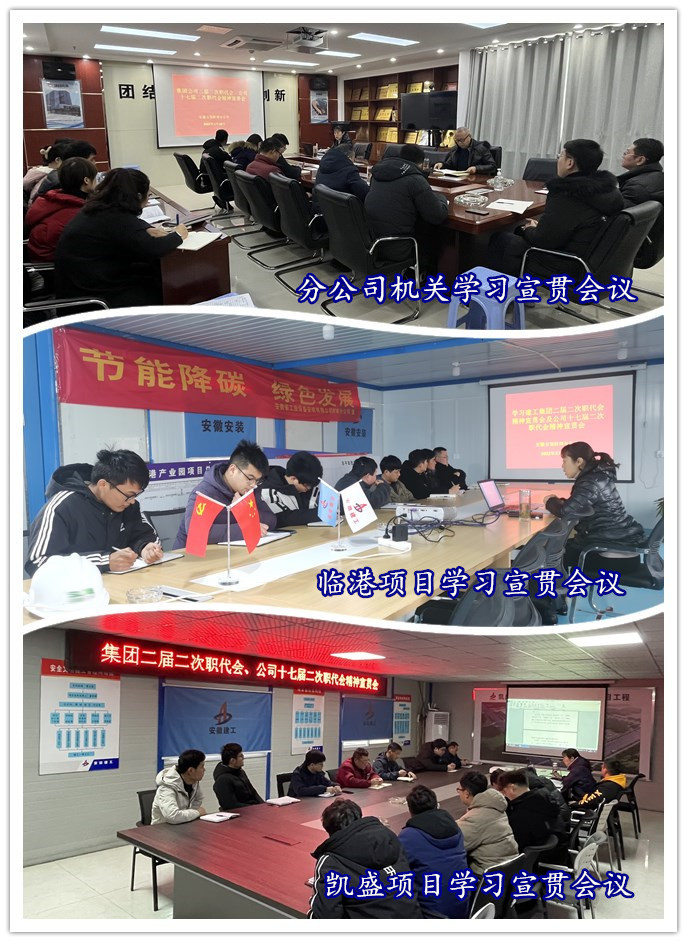 2月10日—11日,在分公司機關和各在建項目一線召開兩級職代會精神專題宣貫會。會議由分公司黨支部書記程茂麗主持。會上,程茂麗首先傳達了集團公司黨委書記、董事長趙時運在集團二屆二次職代會暨2022年度工作會議作的題為《奮力譜寫安徽建工高質(zhì)量發(fā)展新篇章 以優(yōu)異成績迎接黨的二十大勝利召開》的講話和集團黨委副書記、總經(jīng)理、董事劉家靜作的題為《拉高標桿、爭創(chuàng)一流 不斷實現(xiàn)安徽建工更高質(zhì)量更可持續(xù)發(fā)展》的工作報告;隨后又帶領大家深入解讀了公司黨委書記、董事長胡六中在公司十七屆二次職代會上所作的《守正創(chuàng)新 實干篤行 強基固本 競進提質(zhì) 以趕考姿態(tài)答好安徽安裝高質(zhì)量發(fā)展新答卷》的報告及《黨建領航聚合力 深度融合強保障 以高質(zhì)量黨建領航安徽安裝高質(zhì)量發(fā)展》的講話。
