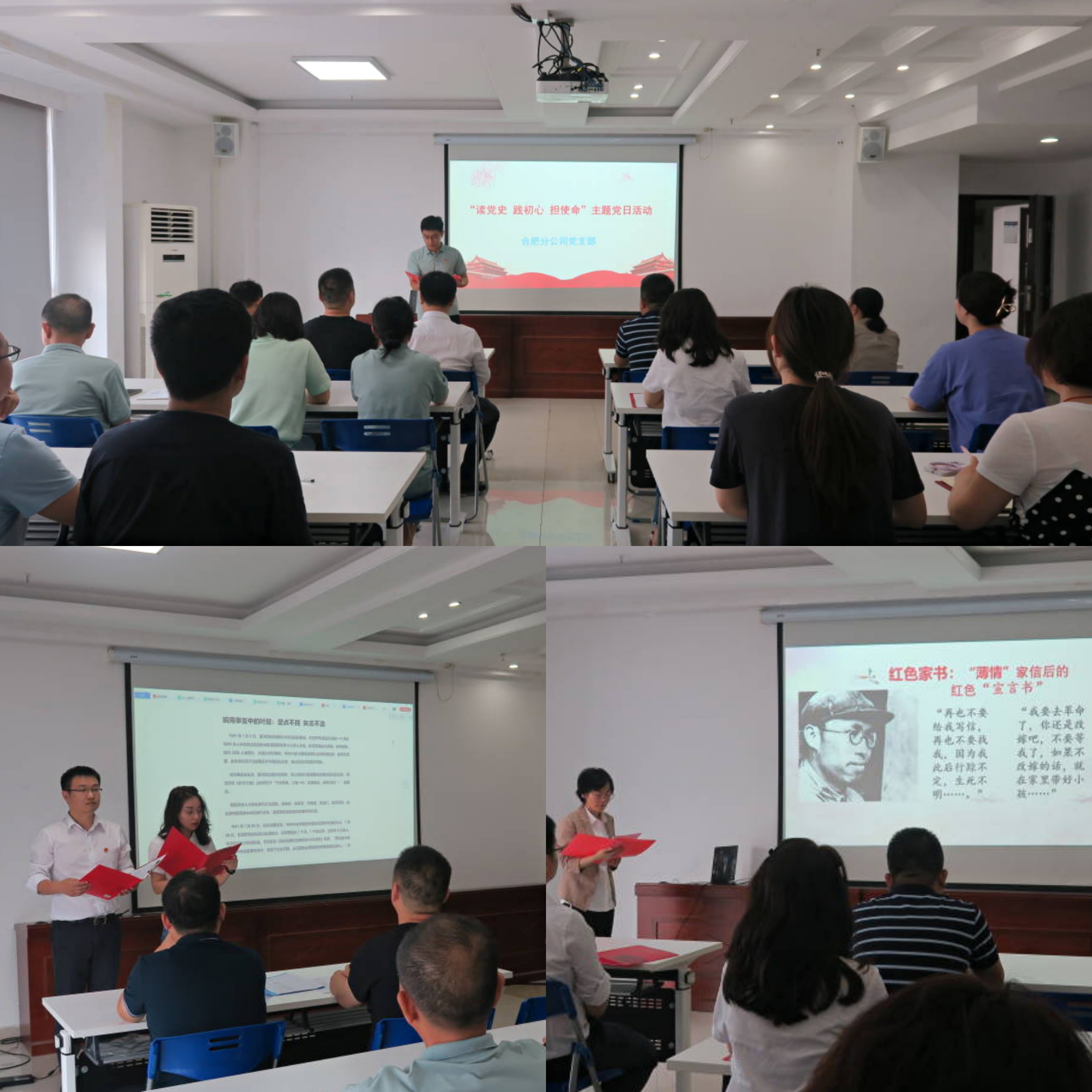 為慶祝中國共產(chǎn)黨成立101周年,進(jìn)一步弘揚黨的光榮傳統(tǒng),重溫黨的光輝歷程,傳遞職工愛黨愛國情懷,“七一”前夕,合肥分公司黨支部組織開展了“讀黨史 踐初心 擔(dān)使命”誦讀活動。圍繞黨史相關(guān)文章、紅色詩詞、紅色家書、紅色故事等內(nèi)容,分公司機(jī)關(guān)和項目部廣大黨員職工積極參與。