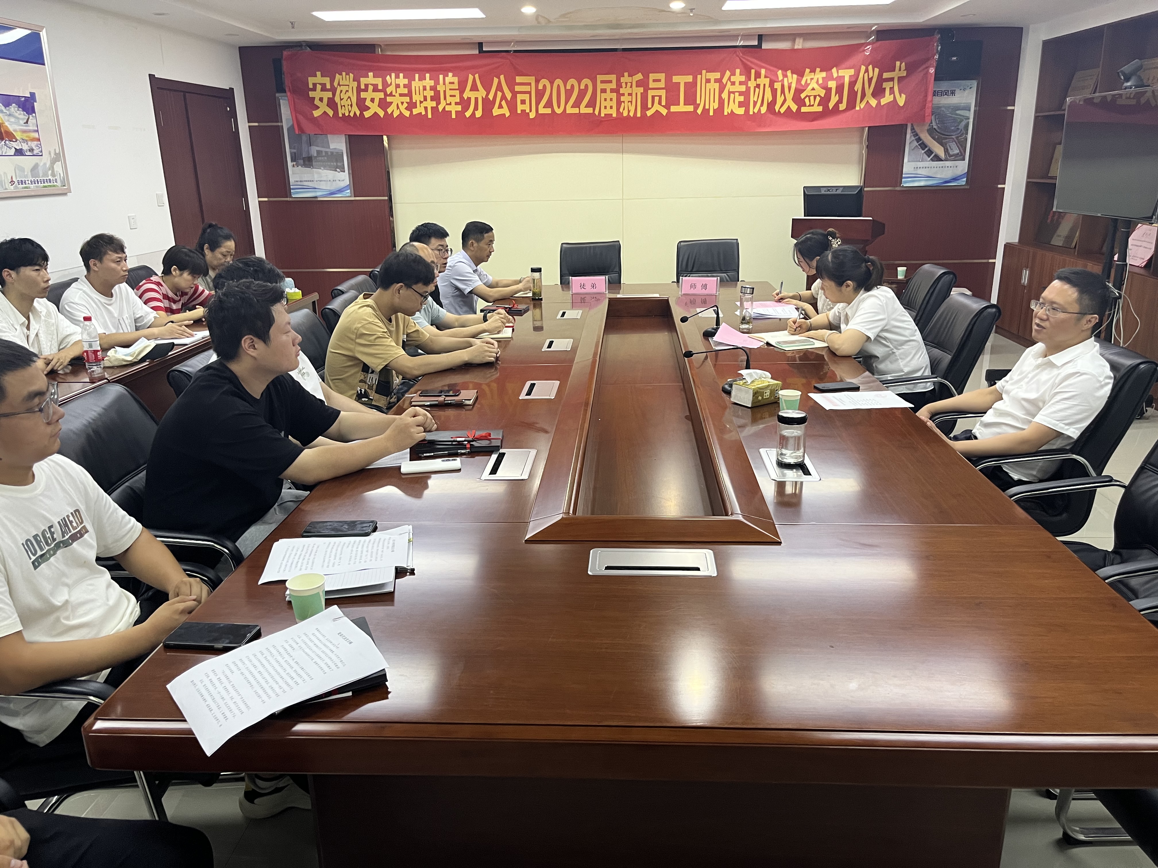為使新員工盡快成長成才,加速人才培養(yǎng),加強(qiáng)分公司人才梯隊(duì)建設(shè)。7月15日下午,蚌埠分公司黨支部舉行了“2022屆新員工師徒結(jié)對”簽訂儀式。分公司黨政主要領(lǐng)導(dǎo)、部門負(fù)責(zé)人、項(xiàng)目經(jīng)理、六對結(jié)對師徒參加了此次會議。