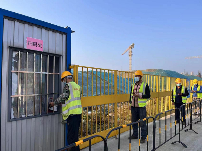 工地人員流動性大、作業(yè)聚集,是疫情防控的重點領(lǐng)域,為此該項目施工現(xiàn)場嚴(yán)格實施全封閉管理,貫徹執(zhí)行全員兩點一線的工作要求。項目部多次進(jìn)行疫情防控教育交底,工地實行管理人員值班制度,監(jiān)督工人上下班戴好口罩、掃二碼、測體溫,人員登記,排隊時必須保持1米以上間距。晚間對各宿舍進(jìn)行巡查,避免出現(xiàn)隨意串門、聚集扎堆等現(xiàn)象。以上措施形成巡檢機制,堅決落實疫情防控常態(tài)化管理。