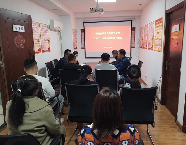 安慶分公司黨支部精心組織及時(shí)學(xué)。組織全體員工收聽收看黨的二十大開幕會(huì)、中共中央介紹解讀黨的二十大報(bào)告新聞發(fā)布會(huì),通過電視、網(wǎng)絡(luò)、廣播等多種渠道及時(shí)了解和關(guān)注大會(huì)盛況,第一時(shí)間學(xué)習(xí)領(lǐng)會(huì)黨的二十大精神。組織購買《黨的二十大輔導(dǎo)讀本》、新修改的《中國共產(chǎn)黨章程》學(xué)習(xí)用書,向黨員干部發(fā)放,通過黨員大會(huì)、黨員活動(dòng)日、黨員帶頭領(lǐng)學(xué)等形式,為全面深入學(xué)習(xí)黨的二十大精神,安慶分公司全體黨員領(lǐng)導(dǎo)干部堅(jiān)持精研細(xì)讀黨的二十大報(bào)告、黨章等大會(huì)文件,全面系統(tǒng)地領(lǐng)會(huì)和把握黨的二十大精神,在真學(xué)真懂、真悟真用上作好表率、走在前列,帶動(dòng)全分公司上下迅速掀起學(xué)習(xí)宣傳貫徹黨的二十大精神熱潮。