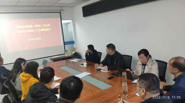 11月9日上午,房建(裝飾)分公司黨支部組織全體黨員、在肥干部職工、項目經(jīng)理召開學習研討黨的二十大精神專題會議。會議要求,全體干部職工要統(tǒng)一思想,凝心聚力,把學習二十大精神與與分公司實際工作相結合,對照年初各項指標任務,努力強弱項,補短板,狠抓落實,推動分公司各項工作上臺階。