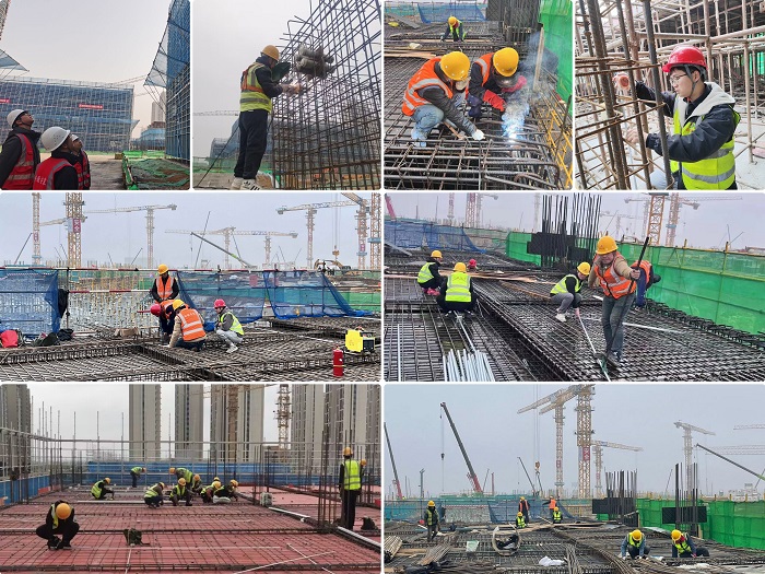 為搶抓新春早開局,連日來,分公司各項目建設工地已是一片繁忙,工人們忙碌的身影隨處可見,一派火熱的建設景象。在安徽安裝合肥分公司新橋國際機場T2航站樓南北指廊機電安裝工程項目工地,現(xiàn)場一線工人正在進行預留套管制作、安裝及防雷接地焊接工作,管理人員緊盯全場,對柔性防水套管預埋等已完成的工作進行驗收,全體參建者忙碌穿梭、開足馬力,以時不我待、只爭朝夕的干勁奮戰(zhàn)一線,抓緊時間確保施工進度,正按照節(jié)點工期目標穩(wěn)步推進。