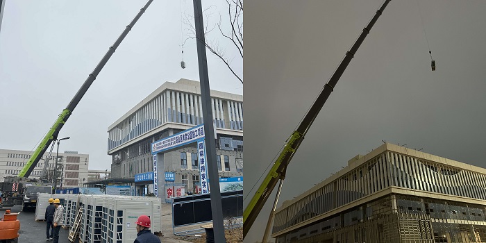 迎難而上、克服困難,完成樓頂設備吊裝