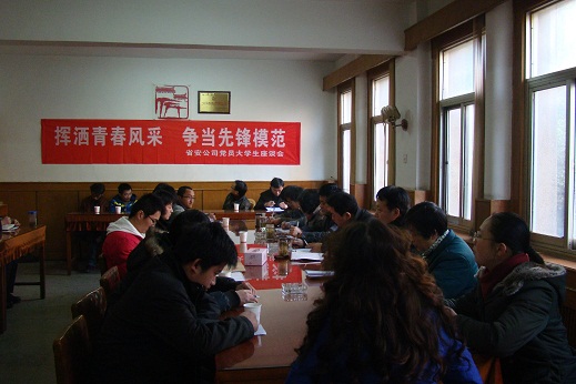最后,戴書記聯(lián)系實際,就公司年輕大學(xué)生隊伍如何快速發(fā)展和發(fā)揮先鋒模范作用提出三點(diǎn)意見:一是年輕同志要著重從學(xué)習(xí)提高,實踐磨煉,作風(fēng)養(yǎng)成三個方面把握自身成長規(guī)律,不斷提升自己。二是結(jié)合科學(xué)發(fā)展觀,堅持以人為本,尤其是對有沖勁、有干勁的在職大學(xué)生多關(guān)懷,積極構(gòu)筑公司“人本管理”模式,把建設(shè)一支高素質(zhì)人才隊伍、黨員隊伍貫穿創(chuàng)先爭優(yōu)活動的始終。三是對在職大學(xué)生如何健康成長、快樂成才提出殷切希望:一要保持積極的心態(tài),要善于穩(wěn)定情緒,合理的進(jìn)行自我減壓,主動與人有效溝通;二要保持務(wù)實的工作作風(fēng),踏實努力,加強(qiáng)執(zhí)行力的鍛煉;三要保持良好的形象,由內(nèi)而外的提升自己的素養(yǎng)。在新的一年里,希望大學(xué)生黨員在各自的崗位上率先垂范,彰顯風(fēng)采,把“揮灑青春風(fēng)采,爭當(dāng)先鋒模范”精神延伸到項目文化、企業(yè)文化和機(jī)關(guān)效能建設(shè)中去,為公司三個文明建設(shè)的進(jìn)一步加強(qiáng)和未來三年大發(fā)展夯實思想、隊伍、管理基礎(chǔ),為公司的“十二五”發(fā)展貢獻(xiàn)力量。