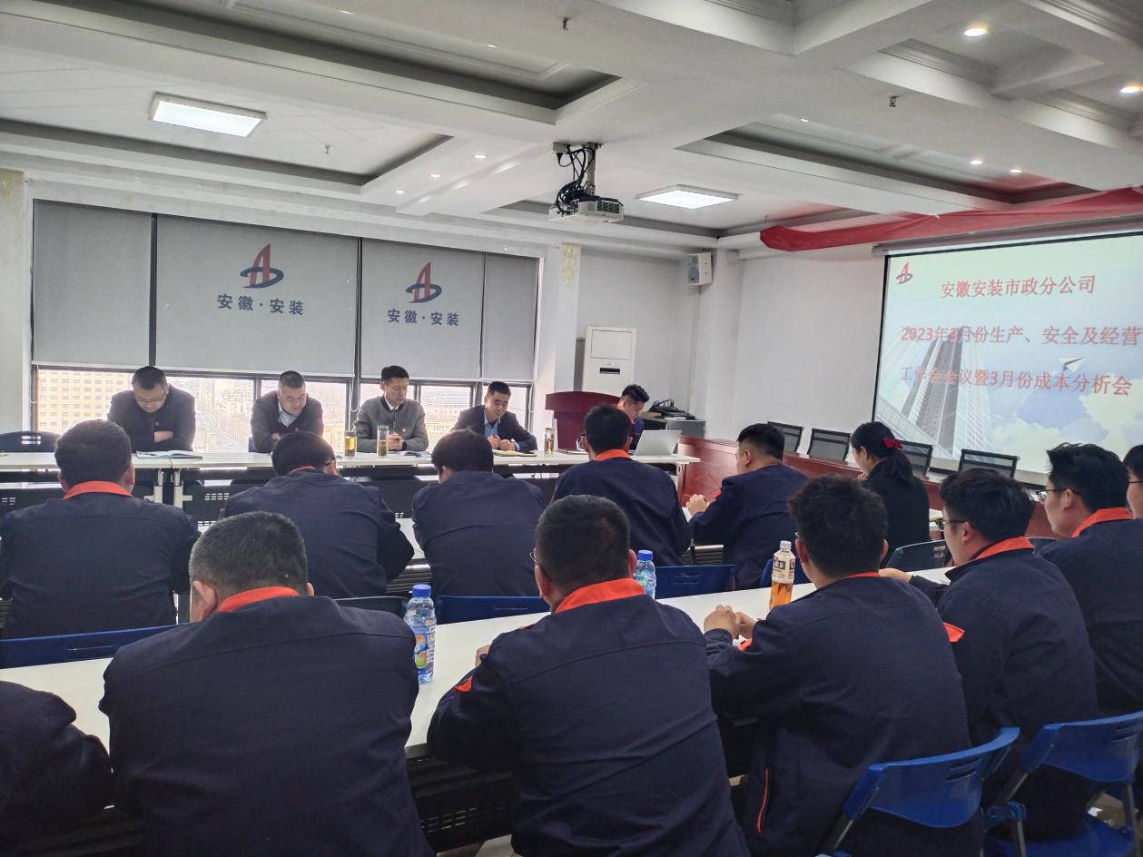 3月4日下午,市政分公司在公司十五樓職工之家組織召開分公司2023年3月份生產(chǎn)、安全及經(jīng)營工作會議暨月份成本分析會,分公司領(lǐng)導(dǎo)班子成員、部門及項目部全體人員參會,會議由分公司副經(jīng)理張漢軍主持。