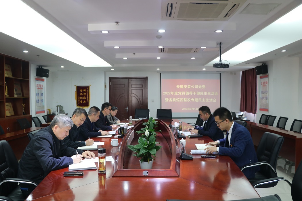 3月14日上午,安徽安裝黨委召開2022年度黨員領(lǐng)導(dǎo)干部民主生活會暨省委巡視整改專題民主生活會。建工股份公司黨委委員、副總經(jīng)理黃代到會指導(dǎo)并講話。安徽安裝黨委書記、董事長胡六中主持會議。