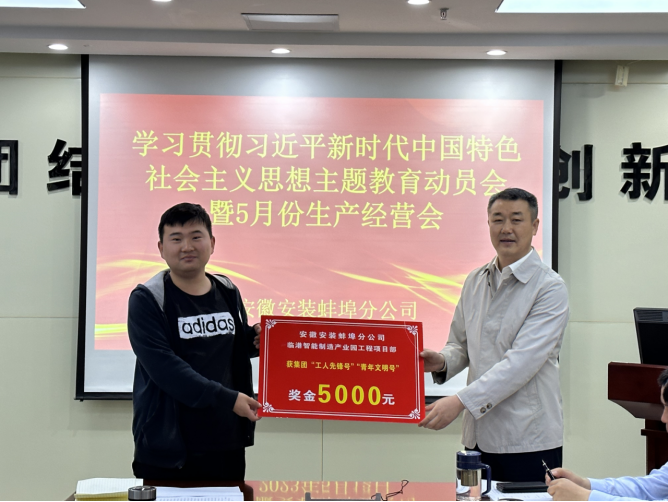 5月12日上午,蚌埠分公司召開學習貫徹習近平新時代中國特色社會主義思想主題教育動員會暨5月份生產經營會,公司紀委書記、工會主席李楊應邀出席會議,分公司領導班子成員、各項目主要負責人、機關各部門負責人及工程管理部全體員工參加會議,會議由分公司黨支部書記、副經理王偉主持。