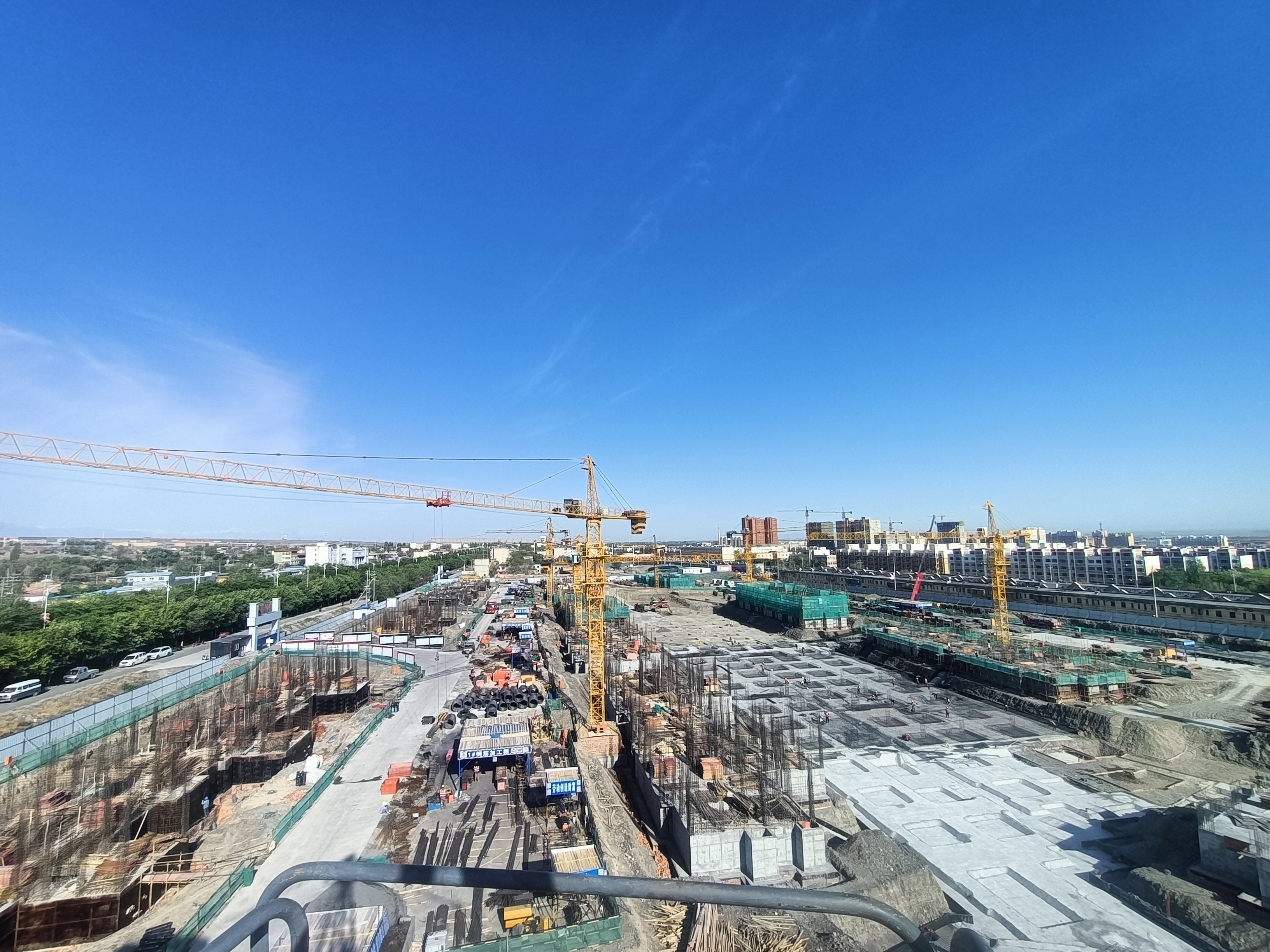 烏蘇市南苑新城項目本項目占地面積118047.31㎡,項目新建34棟住宅樓,1466套住宅,平均層數10層,總建筑面積222500.41㎡。其中:地上住宅總面積185360㎡,配套商服1209㎡,配套綜合樓1890㎡,日間照料中心1758㎡,社區(qū)物業(yè)用房1869㎡,地下室建筑面積18903㎡,地下車庫及人防建筑面積11511.41㎡,綠化面積42000㎡,配套建設及附屬工程。截至目前,A區(qū)1,2,3,4基礎土方開挖,筏板防水施工,筏板鋼筋綁扎已完成,6,8,12,13,14,15,16,17,18,20,21,22,23,24#正負零以下結構工程施工完畢;A6,12,21,22,23,24#基礎回填已完畢,一層外架施工已完成70%,一層結構已完成60%;人防地庫土方已開挖至消防水池,總體土方已開挖完成90%,地庫31-38交A-1至A-8軸鋼筋綁扎完成,16-26軸交A-K軸鋼筋綁扎完畢,木工筏板加固模板支護工程已完成50%;B區(qū)換熱站,3,4#土方工程已開挖至基底預留30CM。