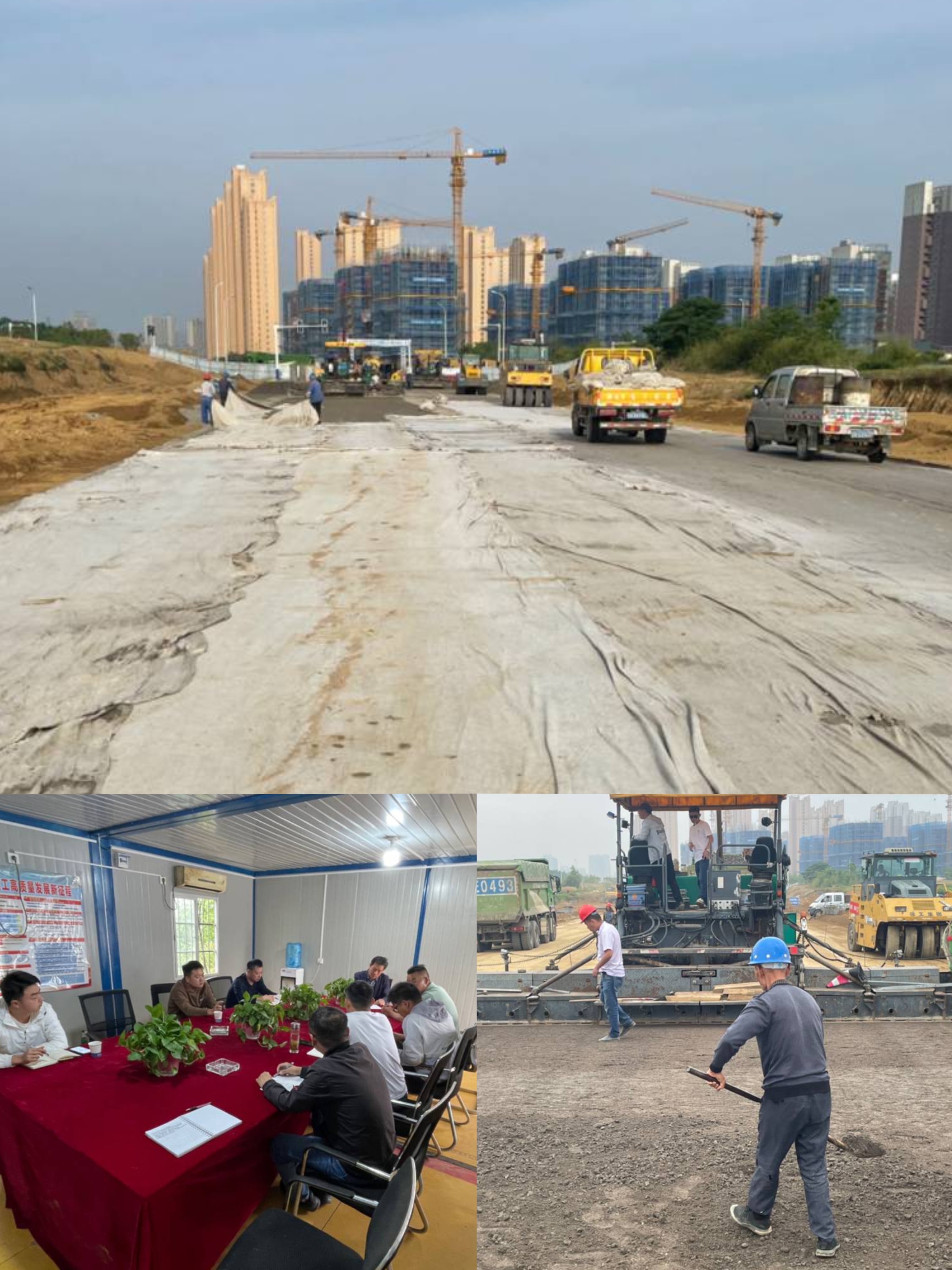 為確保鋪筑質量,項目部提前制定施工計劃,召開專題會議;同時嚴把原材料關,對施工機械、技術措施、作業(yè)環(huán)境、防控手段等方面存在的不足進行了全面排查整改,并圍繞工藝工法、技術標準、安全環(huán)保施工等方面進行教育培訓和技術交底,這一系列的有力舉措為試驗段的成功開鋪奠定了堅實基礎。