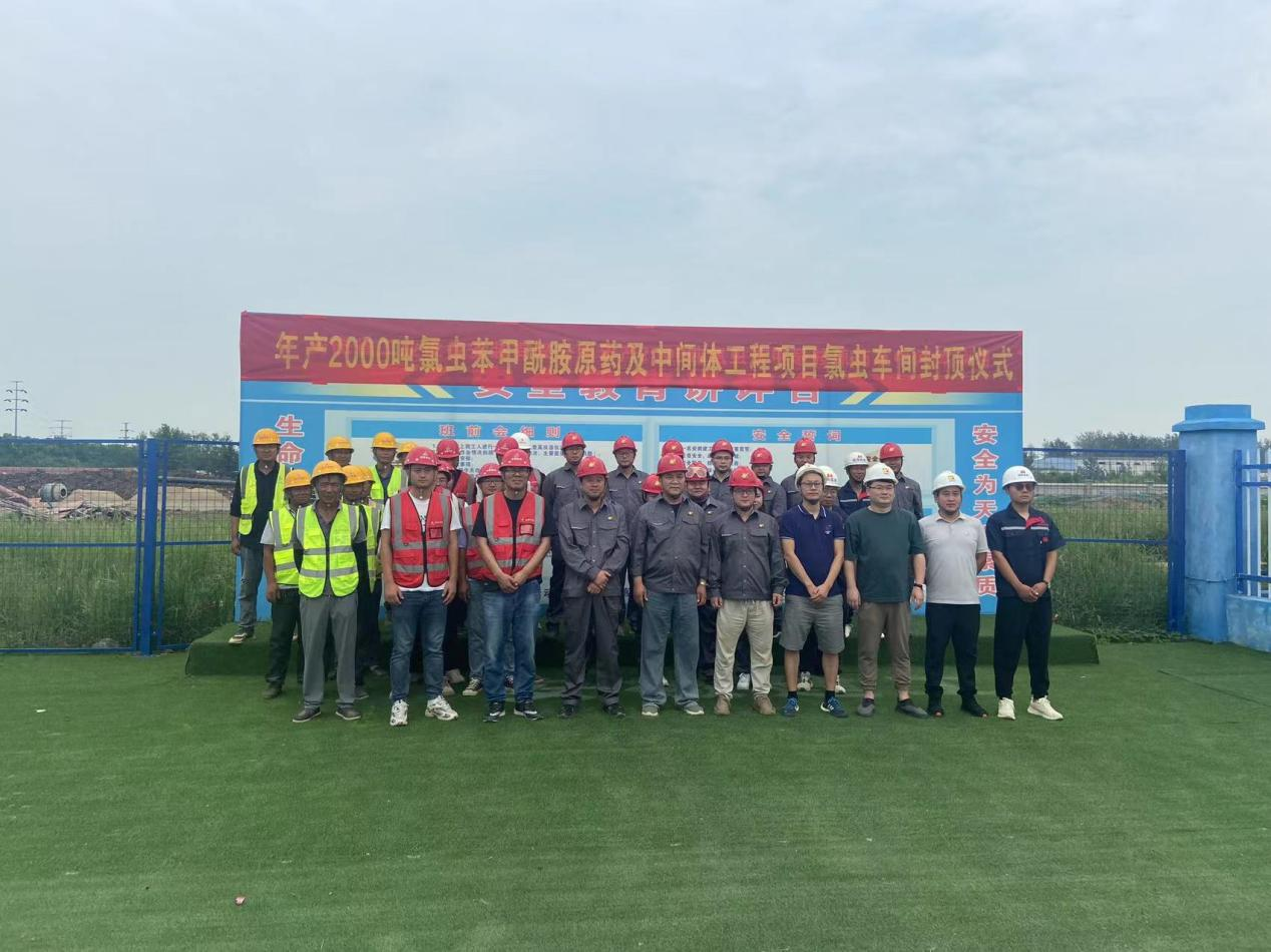 8月31日,蚌埠市淮上區(qū)化工園區(qū)內年產2000噸氯蟲苯甲酰胺原藥及中間體項目氯蟲一號車間,伴隨著最后一方混凝土澆筑到位,聳立的車間主體被“封頂大吉”的大紅條幅和紅色祝福標語裝點得格外喜慶!建設單位、監(jiān)理單位、施工單位等共同參加了封頂儀式。
